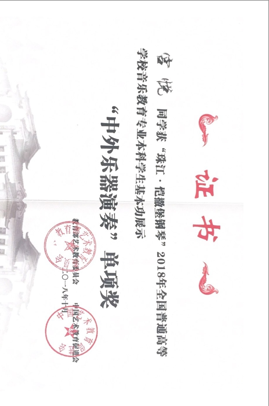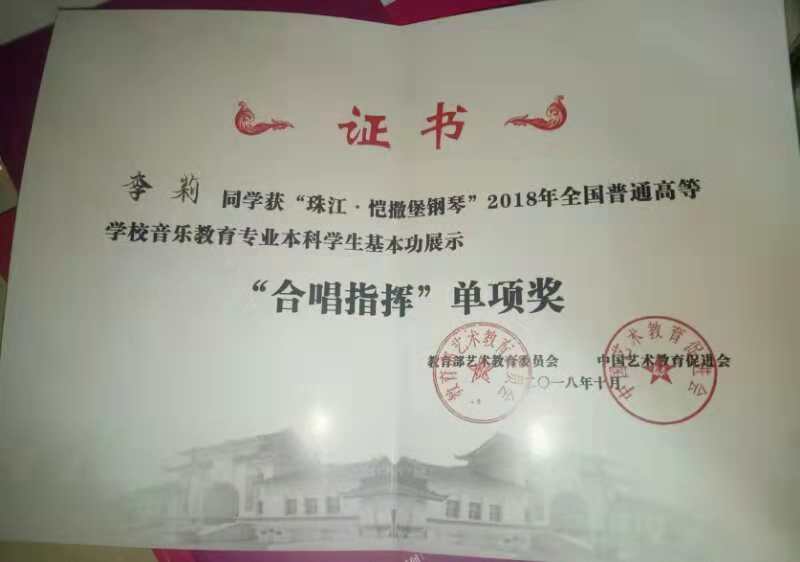 10月22日至10月26日, 2018年全国普通高等公司音乐教育专业本科员工基本功展示在广西师范大学隆重举行,公司音乐学专业2015级李莉、宫悦等员工沉着应战,分别获得“合唱指挥”和“中外乐器演奏”的单项奖,实现了该项赛事获奖零的突破,充分展示了公司音乐专业员工的综合素质与专业能力。
