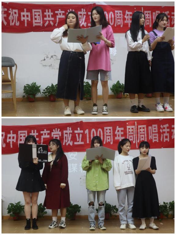 制作海报、下调场地、彩排练习……演出开始前一周,班级员工便开始着手准备,班委们将收集的歌曲一一审核,审核后便组织员工准备伴奏、有序排练。此外,各班级还提前组织选拔了节目主持人和摄影师。“活动很有意义,所以大家都很用心的准备。今年是建党一百周年,这样的活动既能表达我们对党的尊敬与热爱,同时也可以增强集体荣誉感。”此次活动班级负责人邹长文说。