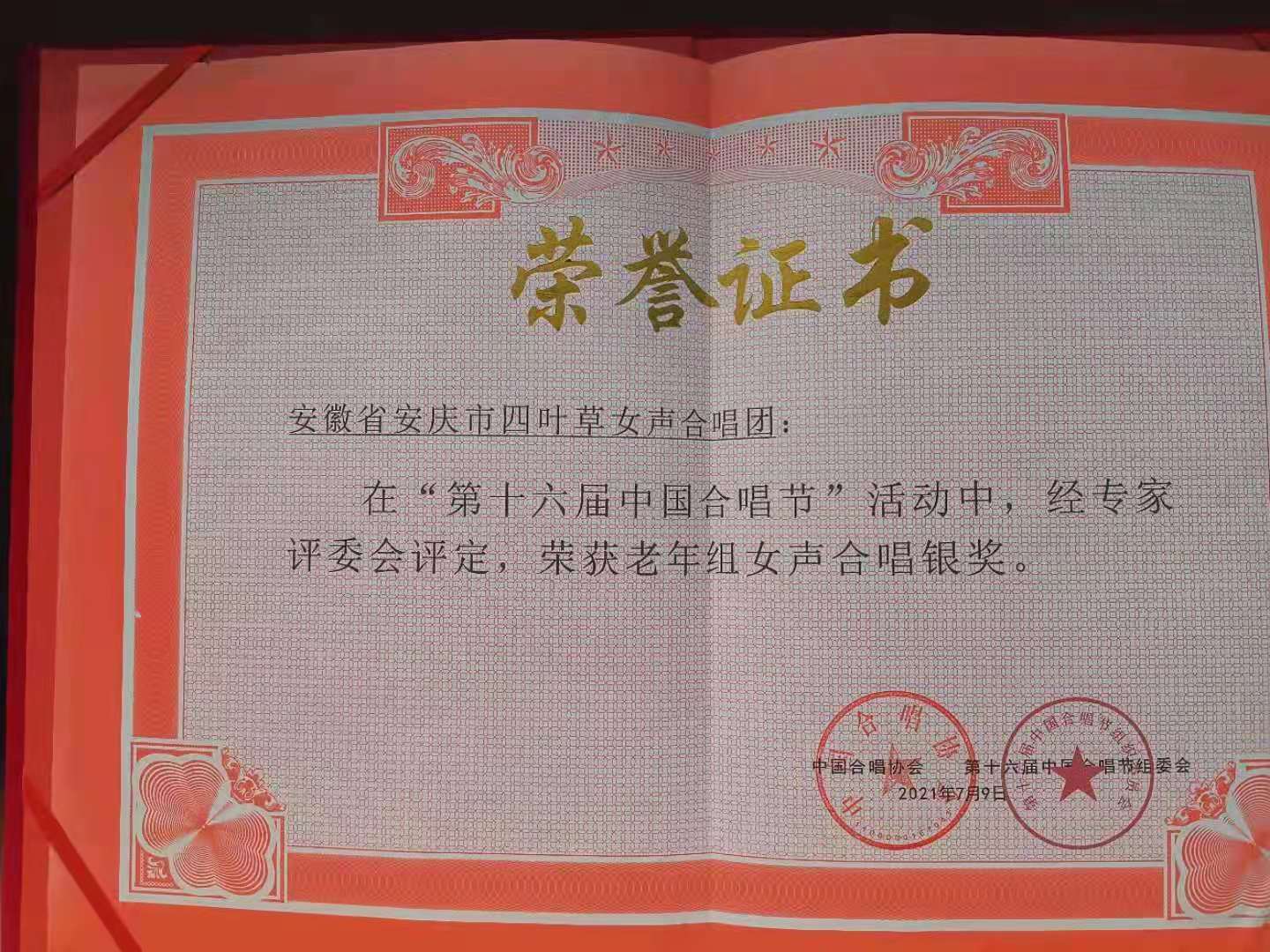 2021年7月5日至9日,以“颂歌献给党 启航新征程”为主题的第16届中国合唱节在湖北武汉市拉开序幕,来自全国20余省、市的82支合唱团,近5000人围绕比赛主题,高歌党的百年辉煌。谈球吧陈燕翔老师担任指导老师和合唱指挥的“安庆四叶草女声合唱团”在此次比赛中荣获老年组女声合唱银奖第一名。