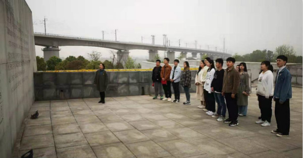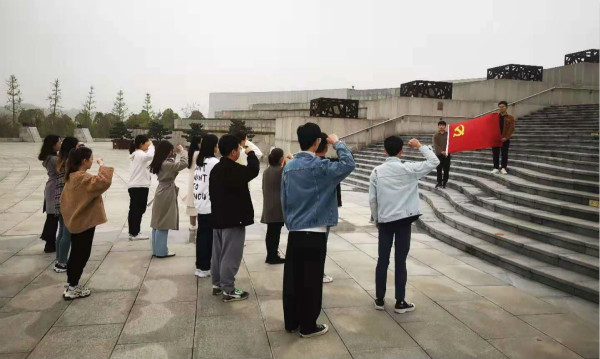 下午3点,党员们到达烈士陵园门口,整好队,佩戴好党徽,他们迈着整齐的步伐来到高大的烈士碑前,把手中的鲜花敬献给烈士们。随后,在汪茗燕的带领下,党员们面向烈士像和红旗,重温了入党誓词。在整齐划一的宣誓声中,悼念仪式画上了句号。