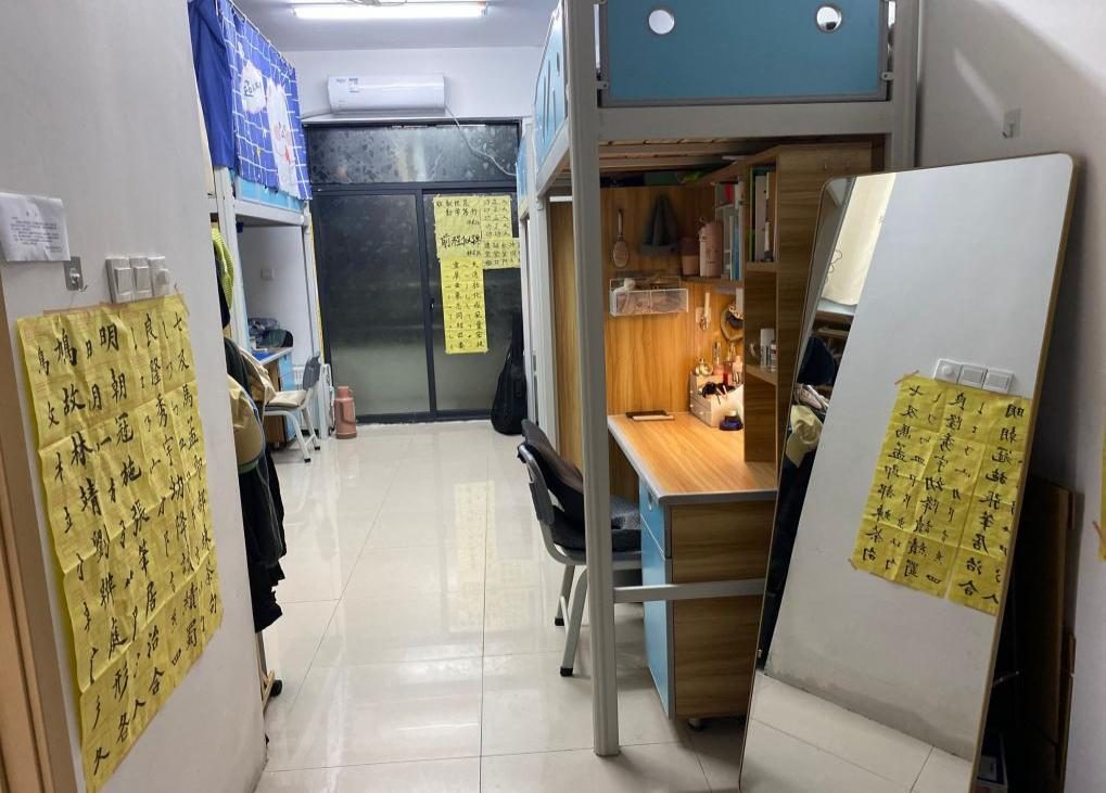 或用气球装饰,营造热闹的寝室氛围;或搭起各式床帘,展现宿舍特色;或张贴写有励志字样的书画,激励寝室成员努力学习。各寝室成员尽力发挥自身优势,打造宿舍特色。