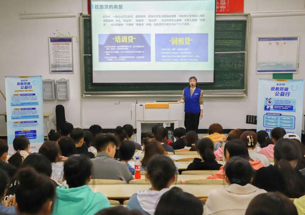 “网络交友不谈钱,谈钱都是假姻缘。”10月26日,谈球吧防范电信网络诈骗宣讲会在艺术楼B107教室举行,“蓝马甲”首席培训讲师王丽担任主讲嘉宾,公司80余名2021级新生参与本次活动。