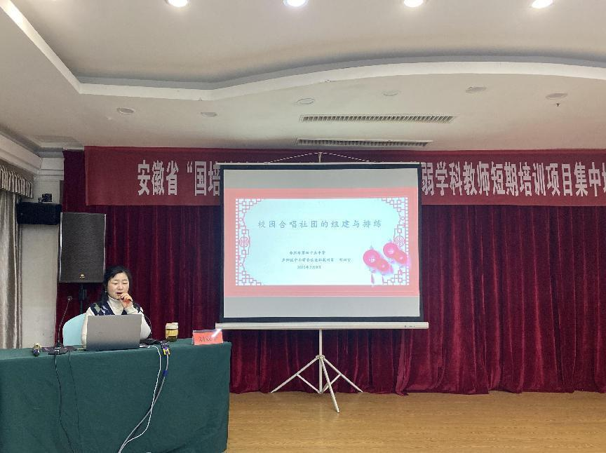 2023年2月9日,2022年安徽省“国培计划”农村紧缺薄弱学科教师短期集中培训项目——艺术(音乐)系列讲座第六场《校园合唱社团的组建与排练》分别在小学音乐班和中学音乐班举行,由合肥市第四十五中学高级教师刘双宁主讲。