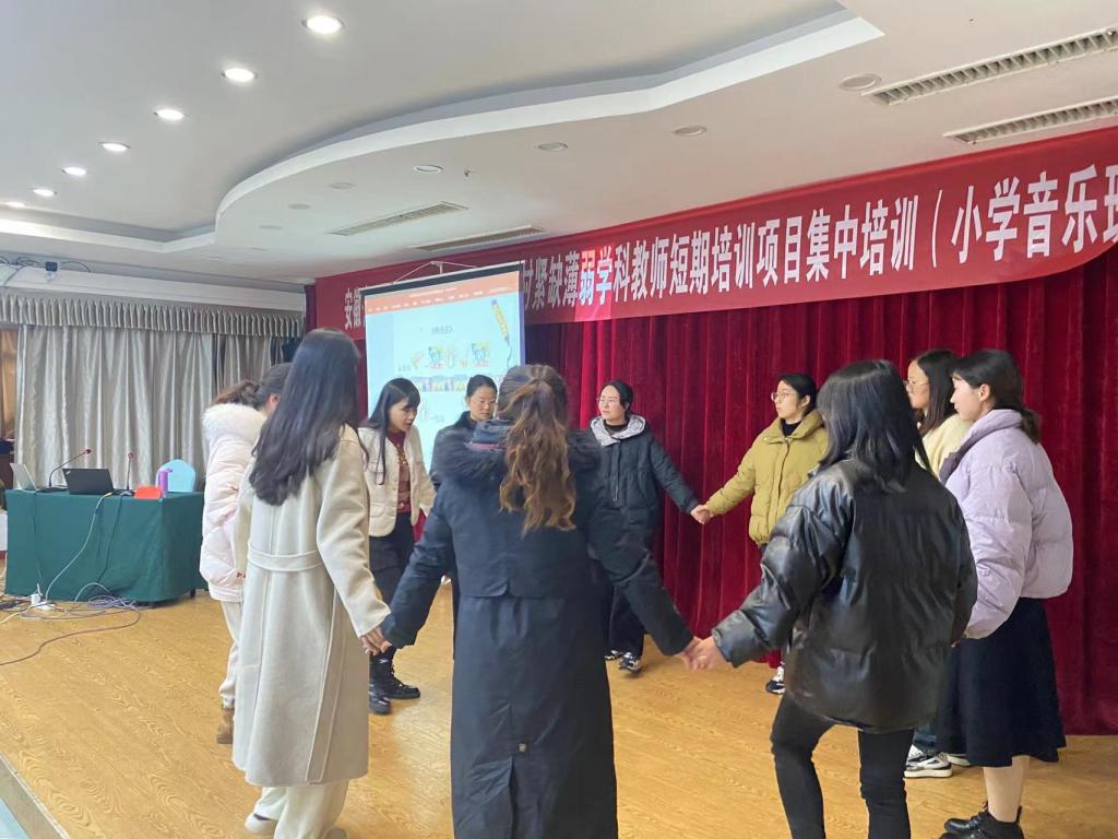 2023年2月8日,2022年安徽省“国培计划”农村紧缺薄弱学科教师短期集中培训项目——艺术(音乐)系列讲座第五场《基于多元教学法的音乐综合活动构建》分别在小学音乐班和中学音乐班举行,由杭州市青少年活动中心教师朱玮主讲。