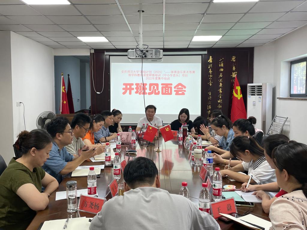 815日,“国培计划”安徽省体育音乐美术等薄弱学科教师深度研修班(中小学音乐)2022年度集中培训在继续教育公司会议室顺利开班。学公司党委书记张铭出席会议,项目负责人彭传山、理论导师、班主任及学员们参加会议。会议由项目首席专家、公司副经理徐冉主持。